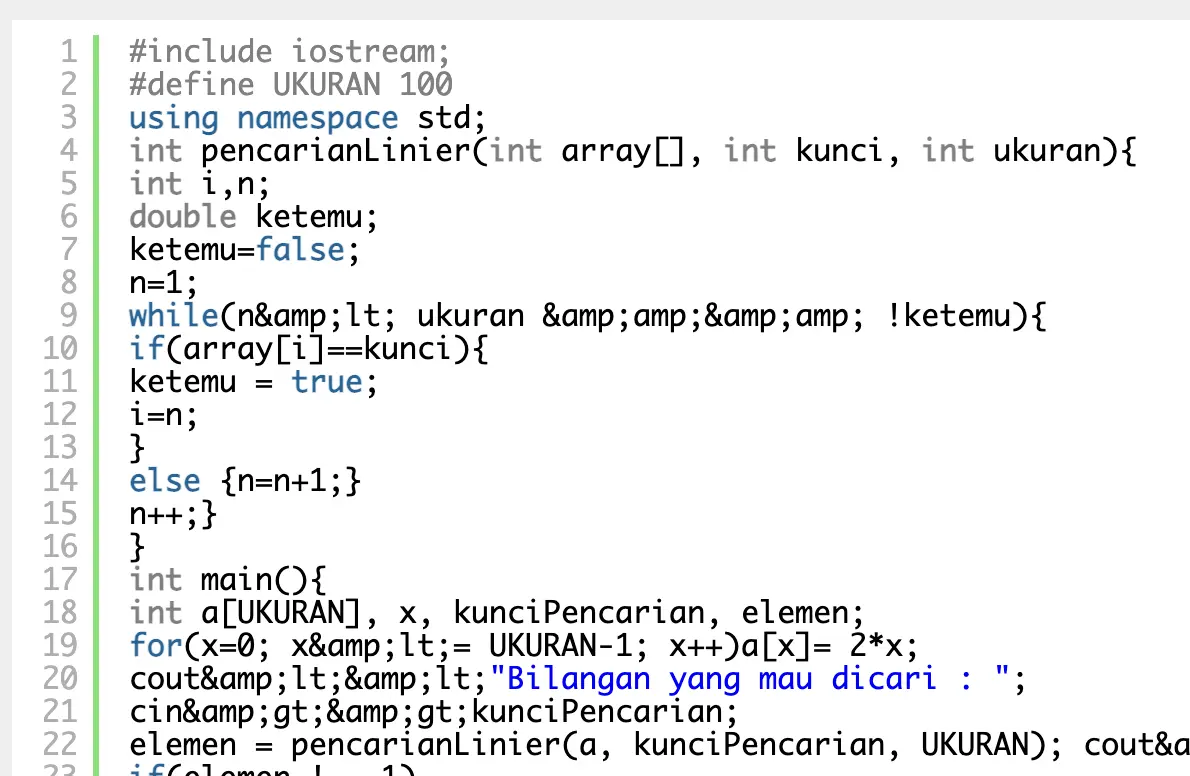 Read MoreProgram pencarian linear adalah sebuah algoritma sederhana yang digunakan untuk mencari elemen tertentu dalam suatu rangkaian atau kumpulan data (bia