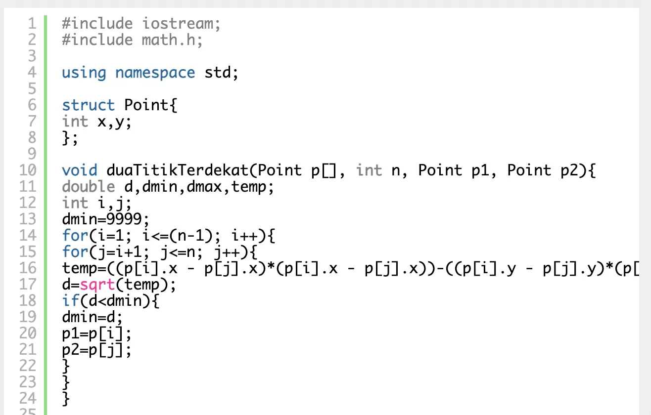 Read MoreProgram yang mencari titik terdekat (nearest neighbor) biasanya digunakan dalam konteks permasalahan pemrosesan data spasial atau pemrosesan graf. Tu